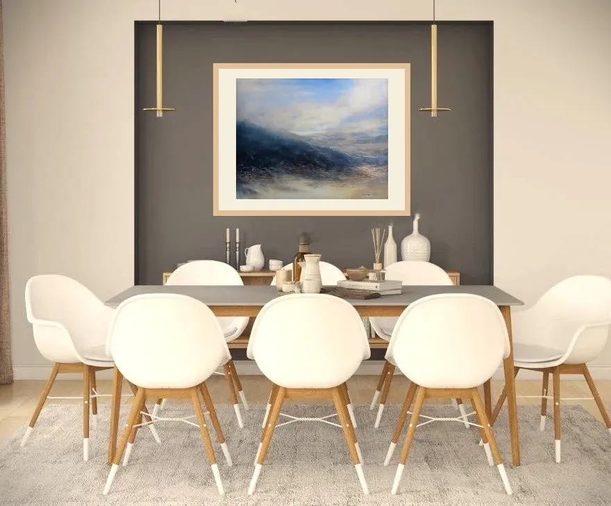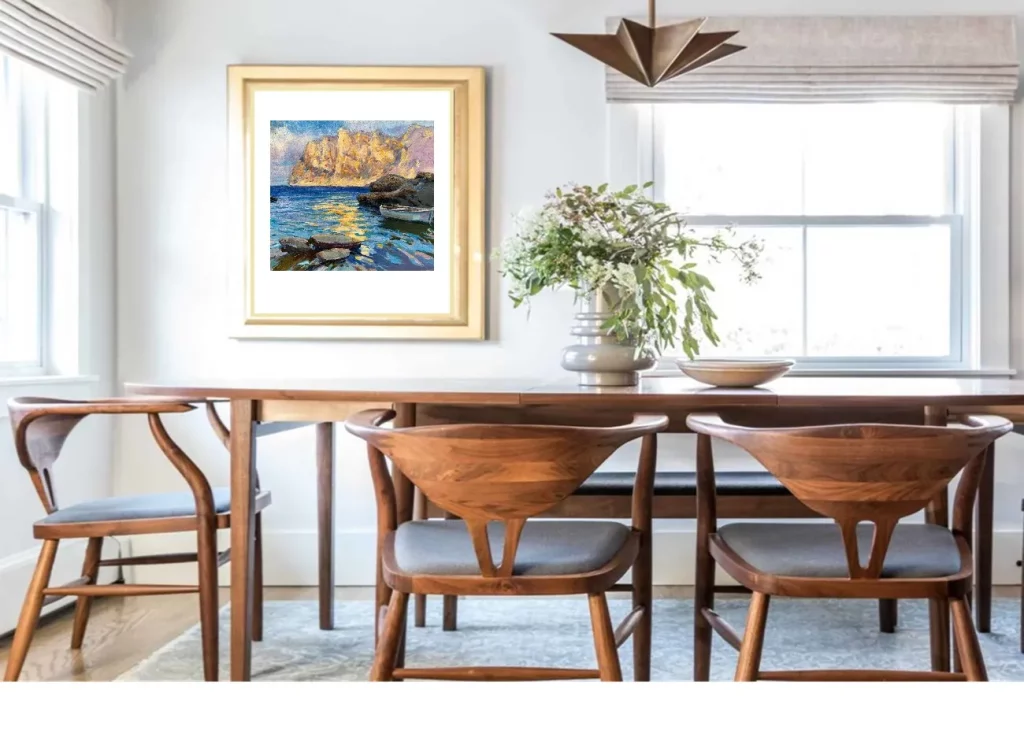Es evidente que las reproducciones de mis obras cumplen perfectamente la función de cómo decorar un living con cuadros o de cuadros de pared para living y comedor pero, por su absoluta fidelidad, también transmiten y desprenden esa magia y sensaciones únicas de las obras originales. Esa posibilidad de poder escoger entre diversos tamaños facilita personalizar y disponer de cuadros para cada estancia de tu hogar. Desde cuadros para sala comedor en formato pequeño hasta cuadros decorativos living de formato grande que funcionan como enormes ventanales. Hay expresiones que suenan grandilocuentes como cuadros para comedor de revista o cuadros para comedor de película, incluso he utilizado reiteradamente el término decoración por imperativo de las búsquedas, pero yo les atribuiría el poder de aportar sensaciones y sentimientos más profundos.
