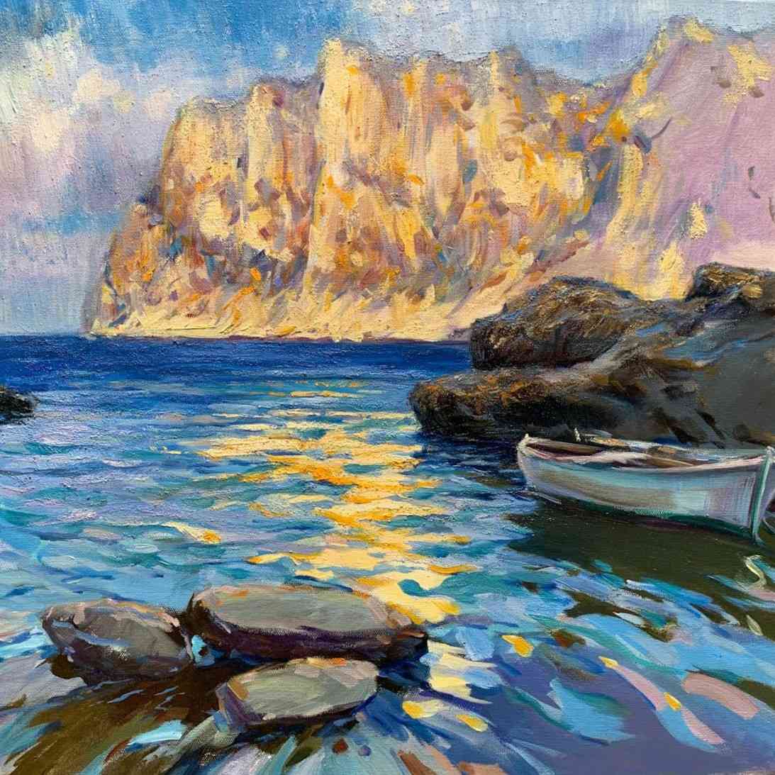 Una vez terminada la empresa titánica que había sido la decoración para la Hispanic Society of America, Sorolla descansa con su familia en Mallorca. Allí pinta para sí mismo, sin presiones, y juega con algunos de sus temas favoritos: los momentos de la luz, el agua, los reflejos, espejos, transparencias. Cierra el círculo. Sorolla realizó al menos nueve vistas durante su estancia en la Cala de San Vicente en las que recoge las variaciones de la luz y el color que el sol va creando sobre el paisaje a lo largo del día.