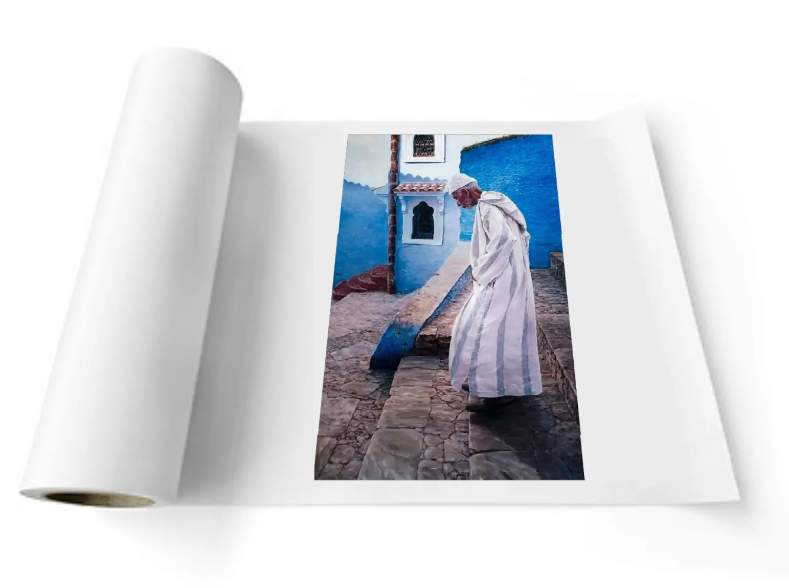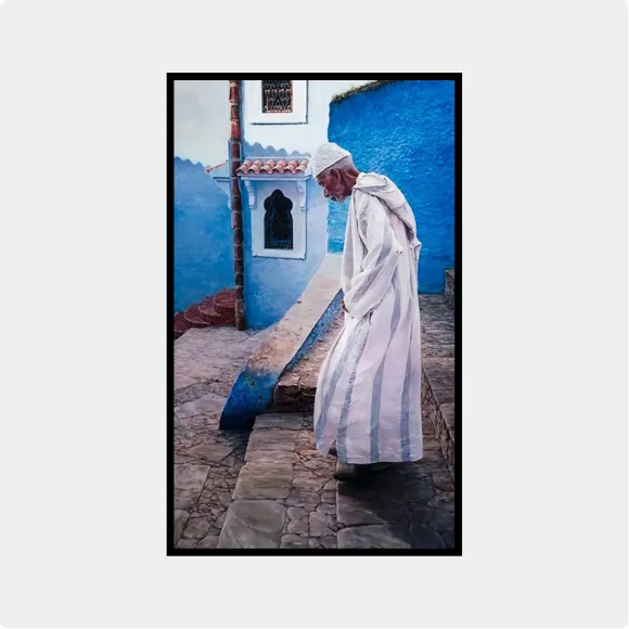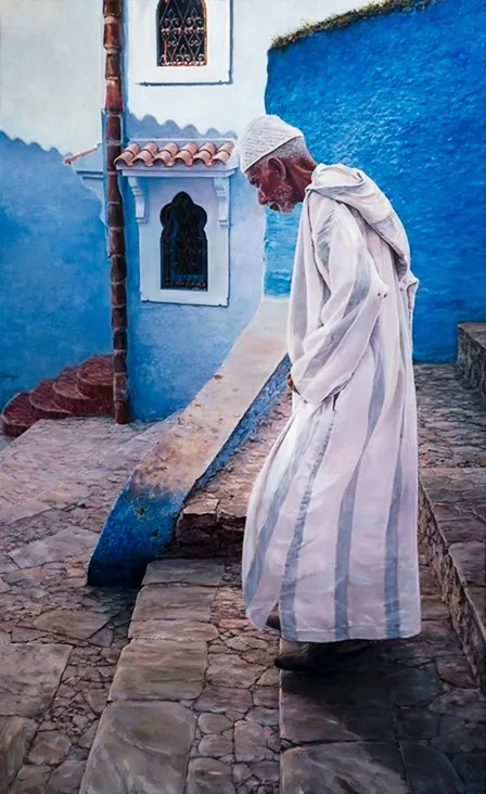 Me sedujo el personaje, su atuendo, su mirada, la calma y ese azul que enmarca su chilaba.
