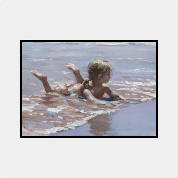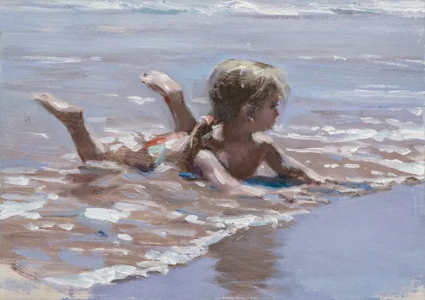 Esta pequeña obra forma parte de una serie realizada durante el verano de 2009, inspirada en niños que jugaban en las playas del Levante mediterráneo español. Son apuntes rápidos comenzados como sesión única, pero con pequeños retoques posteriores para corregir o compensar detalles. Corresponden a mi etapa de estudio en el que exploraba las técnicas y la sensibilidad lumínica del gran maestro Joaquín Sorolla trabajando el tratamiento de su luz mediterránea y la espontaneidad de sus escenas costeras.