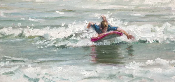 Esta pequeña obra forma parte de una serie realizada durante el verano de 2009, inspirada en niños que jugaban en las playas del Levante mediterráneo español. Son apuntes rápidos comenzados como sesión única, pero con pequeños retoques posteriores para corregir o compensar detalles. Corresponden a mi etapa de estudio en el que exploraba las técnicas y la sensibilidad lumínica del gran maestro Joaquín Sorolla trabajando el tratamiento de su luz mediterránea y la espontaneidad de sus escenas costeras.
