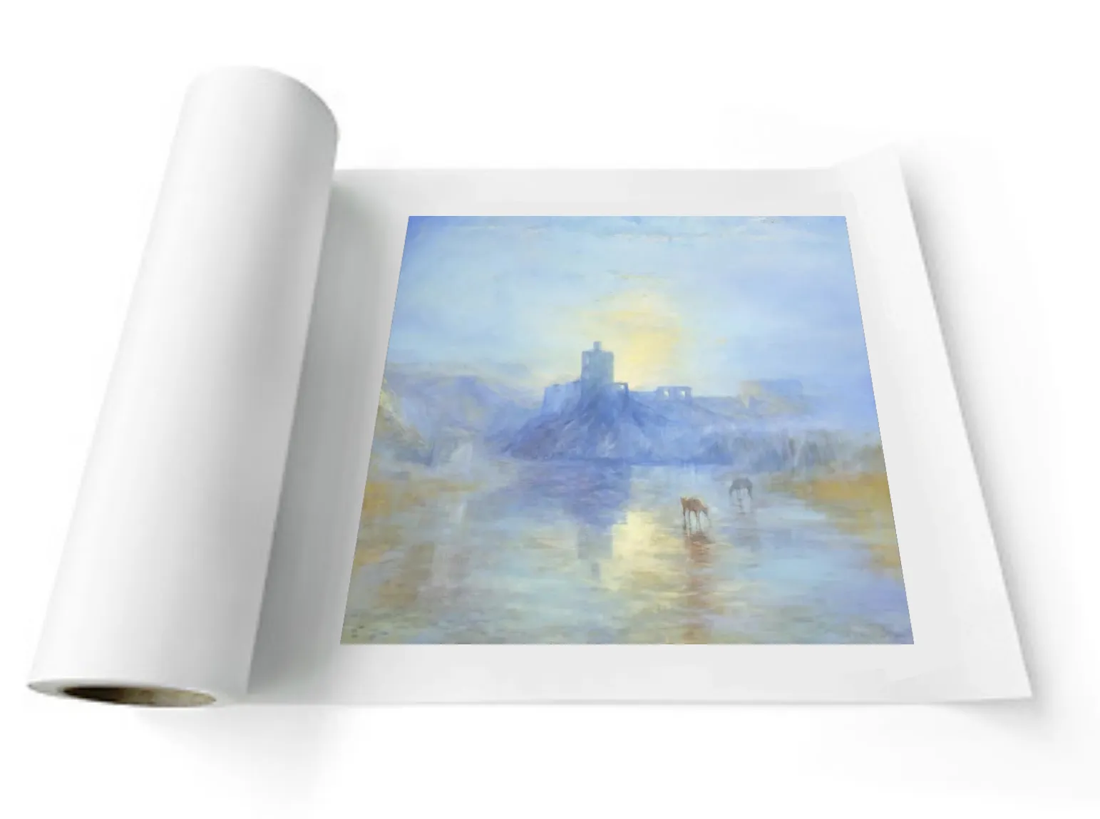 Con esta otra obra rindo tributo a su “Norham Castle – Sunrise” realizado en 1845. Es uno de sus temas inacabados. Tras revisar sus otros apuntes de ese mismo lugar me permití terminarlo con un formato que repetía sus medidas y todos los elementos compositivos.