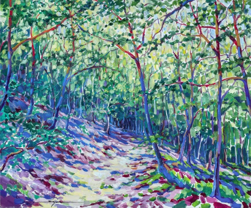 El artista francés André Derain desarrolló un estilo pictórico a principios del siglo XX muy particular. Su pintura “au plein air” con colores primarios y secundarios son una explosión de energía y alegría. Con alguno de aquellos principios confeccioné este tema lleno de vitalidad y movimiento, donde los tonos vibrantes dialogan entre sí creando una sinfonía visual y cada matiz cuenta una historia de luz, pasión y la eterna búsqueda de la belleza en su estado más primitivo y honesto.