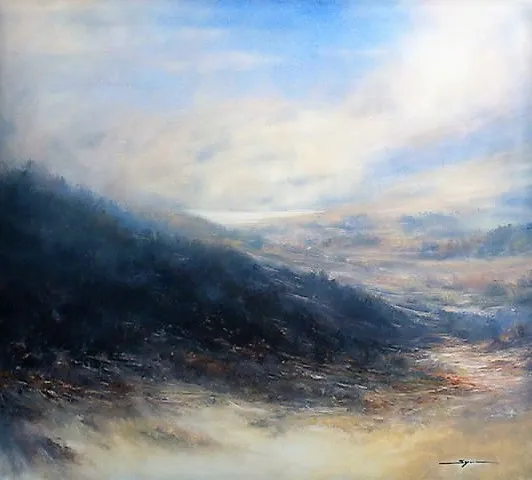 Aquí, las nubes no son simplemente nubes, los caminos trascienden de su función de tránsito, y las montañas abandonan su solidez para fundirse cromáticamente. Todo fluye hacia un horizonte indefinido.